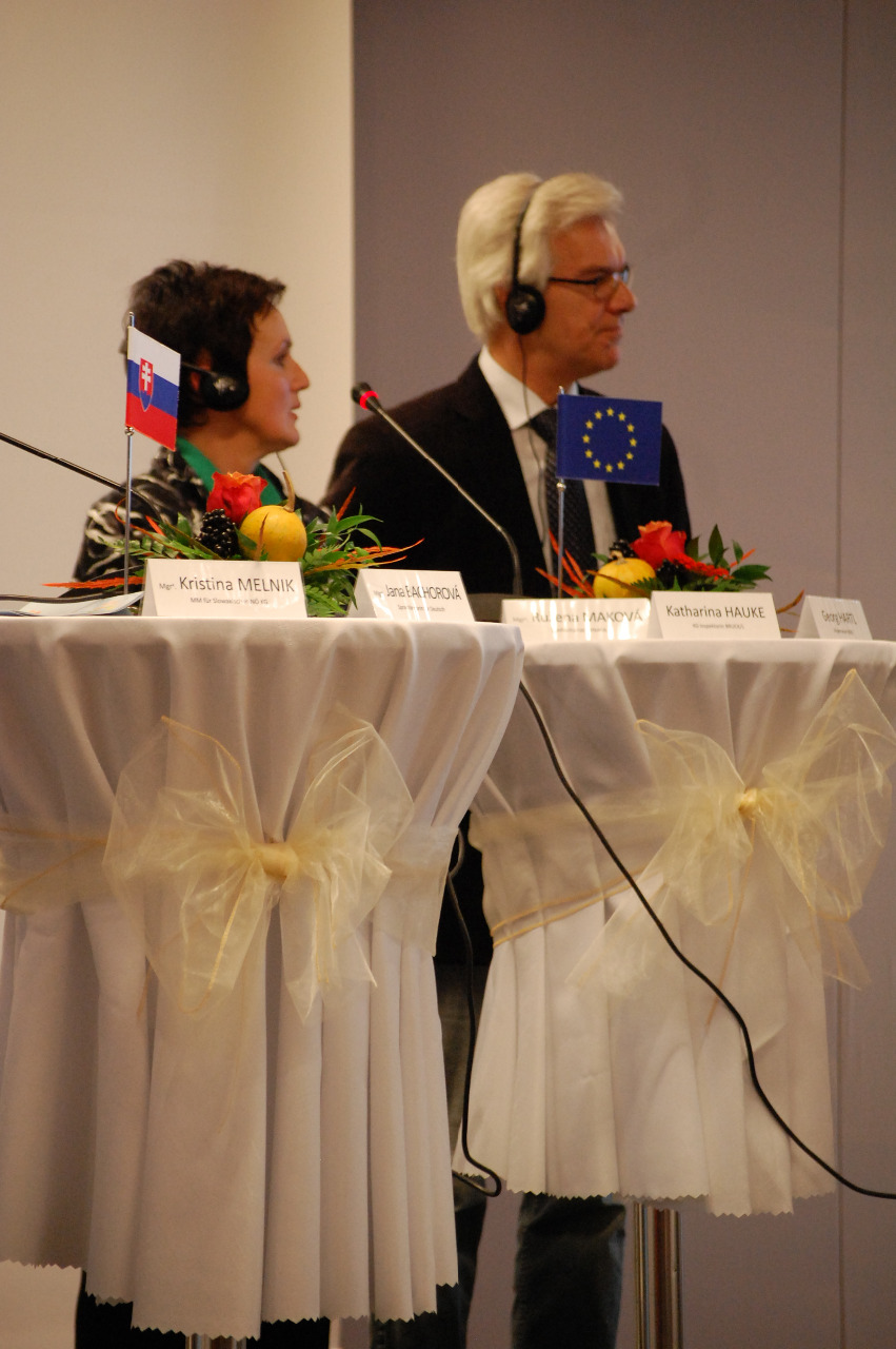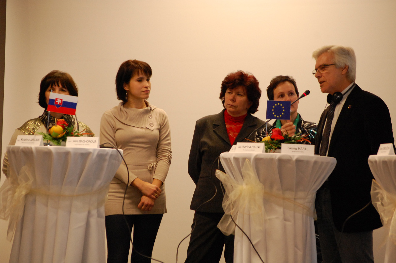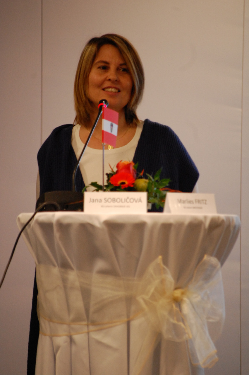 - 9,55 – 10,15: p. Mag. Elisabeth Wappelshammer predniesla za tím zhotoviľa evaluačnej štúdie k projektu IB-KE – Dolnorakúskej Akadémie dosah a význam regionálnych efektov projektu v pohraničí, oboznámila prítomných o dosiahnutých efektoch výučby jazykov u detí, formulovala doporučenia pre nasledujúcu prácu