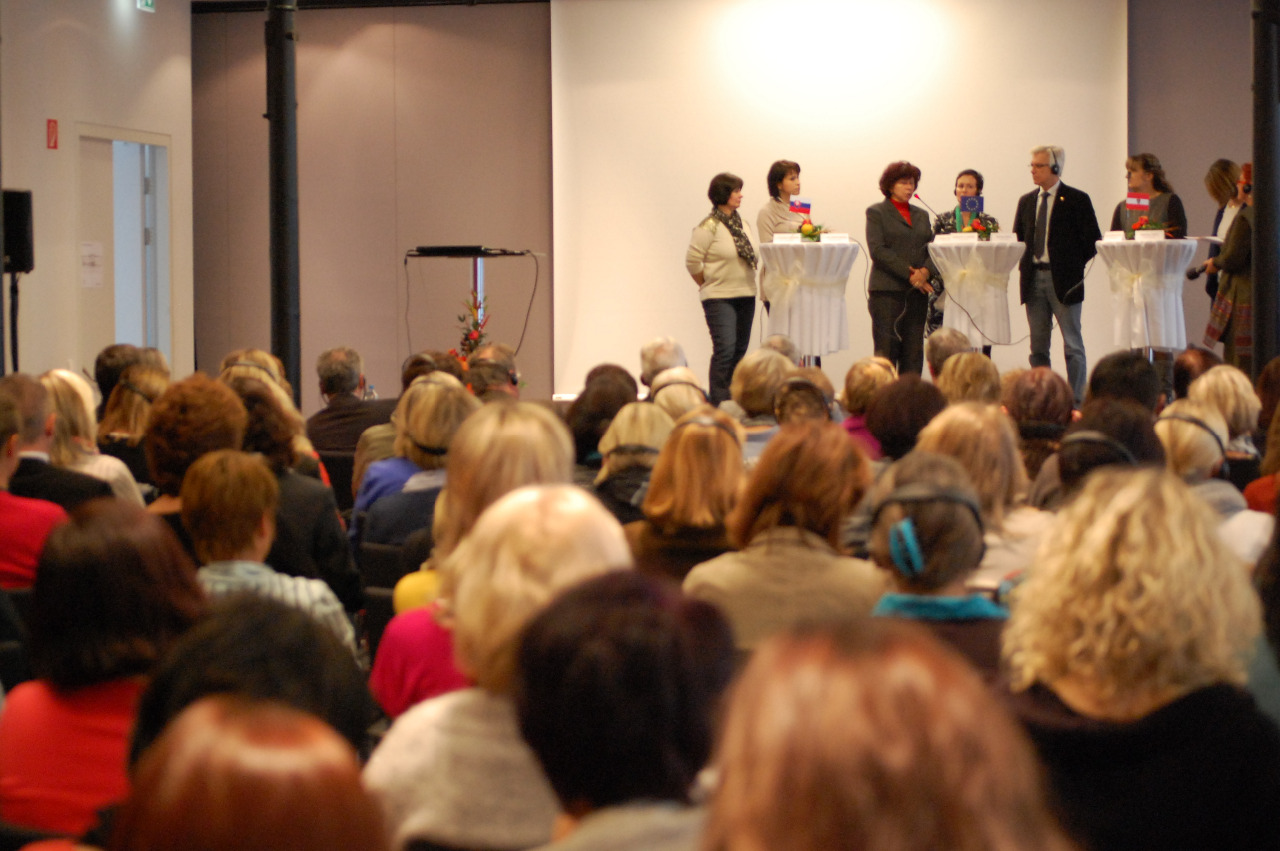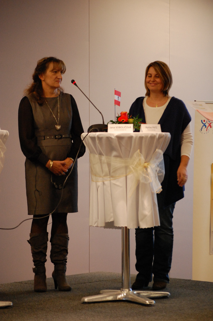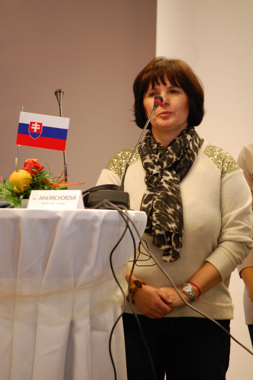 - 9,55 – 10,15: p. Mag. Elisabeth Wappelshammer predniesla za tím zhotoviľa evaluačnej štúdie k projektu IB-KE – Dolnorakúskej Akadémie dosah a význam regionálnych efektov projektu v pohraničí, oboznámila prítomných o dosiahnutých efektoch výučby jazykov u detí, formulovala doporučenia pre nasledujúcu prácu